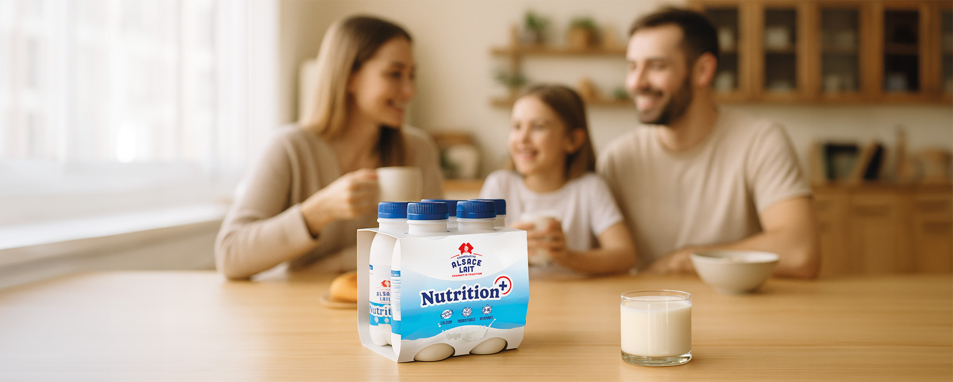 Un univers graphique clair, positif et accessible, pour une gamme saine et familiale, fidèle aux engagements d’Alsace Lait.