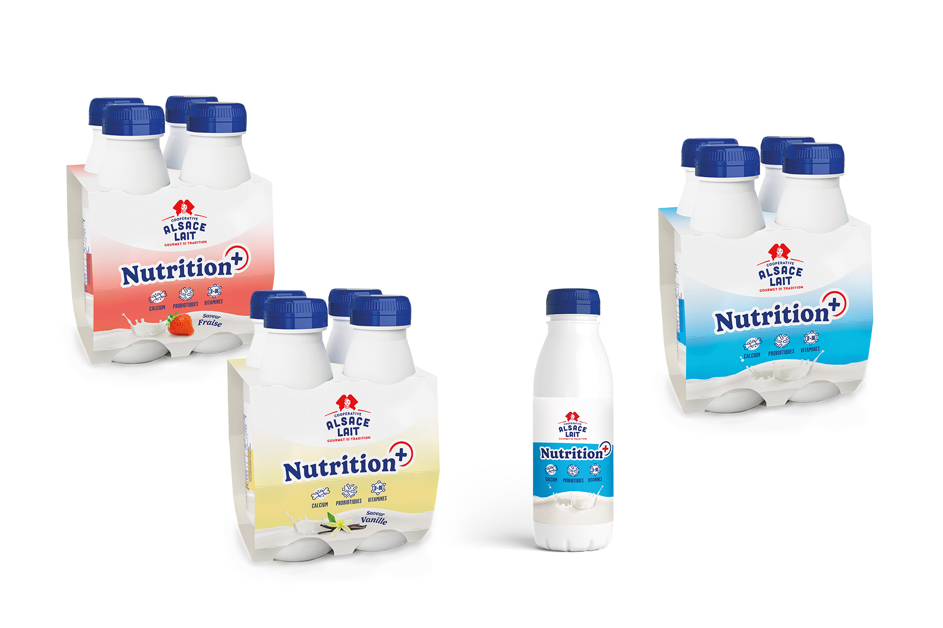 Alsace Lait lance Nutrition+, une gamme de yaourt à boire pensée pour allier plaisir et équilibre nutritionnel au quotidien. L’agence a accompagné la marque dans la création de l’identité visuelle, la charte packaging autour de trois saveurs – nature, vanille et framboise – ainsi que la conception de pictogrammes illustrant les bénéfices santé du produit.